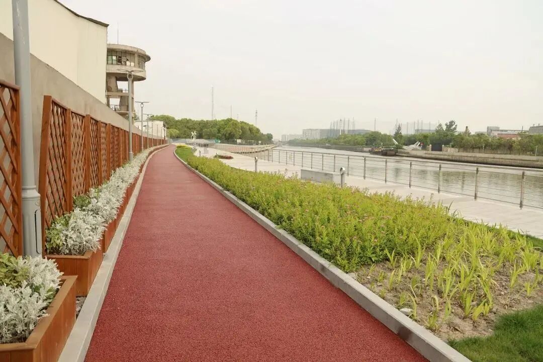 据了解,这条步道西至外环线东侧嘉定区界线、东至西浜西岸、南至苏州河北岸线、北至腹地延伸10米,面积约0.68公顷,岸线长度约670米。改造前,这段岸线都是凹凸不平的石子路,沿线还有不少企业和运输码头。如今,这里新建了彩色透水沥青跑步道和漫步道,绿化种植面积达1783平方米。