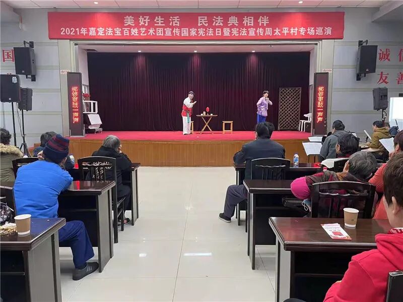 组织以“我为群众办实事”为主题的普惠性、体验性、群众性学习宣传宪法及民法典专场活动。重点开展“美好生活﹒民法典相伴”2021年嘉定法宝百姓艺术团宣传国家宪法日暨宪法宣传周专场巡演、社区“法治达人”挑战赛决赛。