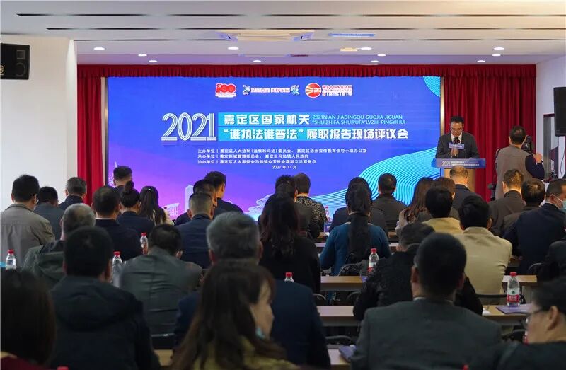 组织2021年嘉定区国家机关“谁执法谁普法”履职报告评议活动,包括社会评议和现场评议。
