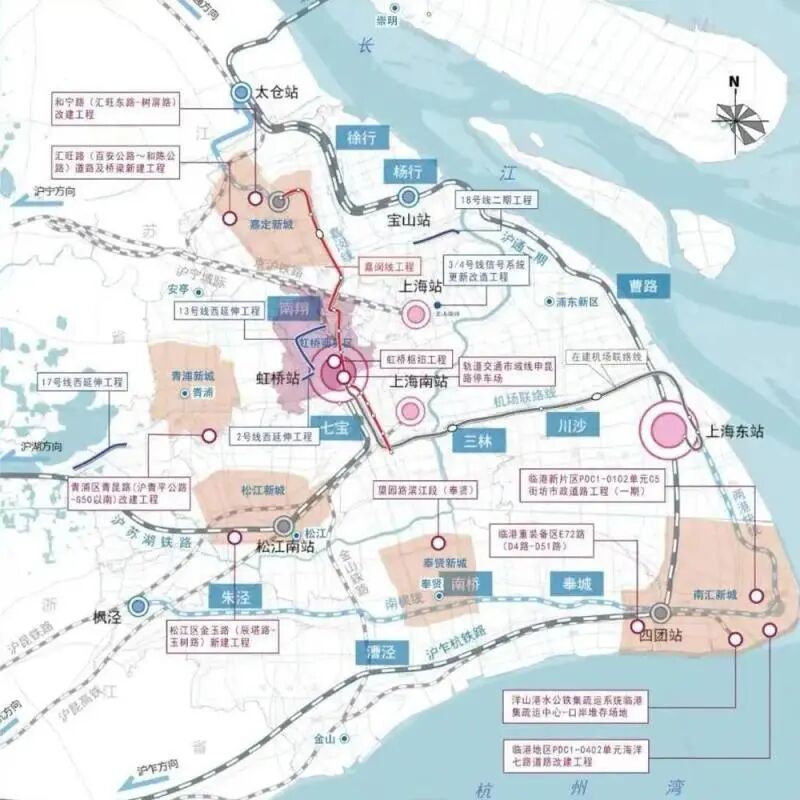 比如,青浦新城将在轨交17号线的青浦新城站建设三线换乘综合交通枢纽,使其成为城际铁路、市域铁路和城市轨道三网融合的关键节点。除了延伸至西岑、金泽的轨交17号线,该站还能换乘贯穿嘉定、青浦、松江、金山的市域铁路线“嘉青松金”线,以及西起长三角生态绿色一体化发展示范区“水乡客厅”、东至虹桥枢纽的“沪苏嘉”城际铁路。三线在青浦新城交汇,将最大限度实现青浦新城与上海市区、其他新城以及苏浙两省的互联互通,做到区域内30分钟可达、45分钟内可直通长三角。