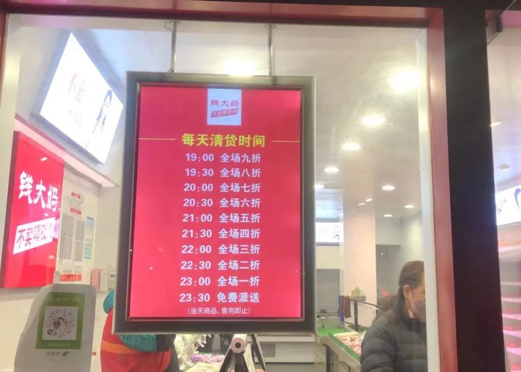 “钱大妈”最受市民欢迎的在于它的促销模式:每晚7点开始9折促销,每半小时再低一折,直至23:30免费派送。