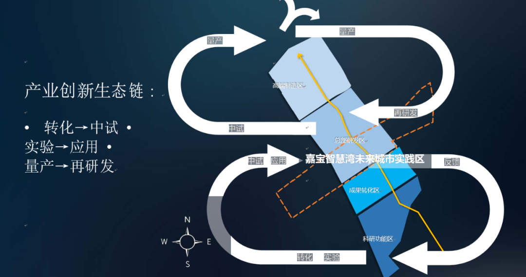 在科技赋能方面,地处上海智能传感器产业园中间位置的嘉宝智慧湾,将成为上海集成电路“一体两翼”产业布局战略中“北翼”的重要组成部分。项目将紧扣集成电路、智慧交通、数字科技、人工智能等未来产业发展趋势,构建以“头部企业”为引领的总部、设计研发及其应用的产业新生态、新空间。形成转化——中试、实验——应用,量产——再研发的产业创新生态链,着力打造城市数字化转型示范地。
