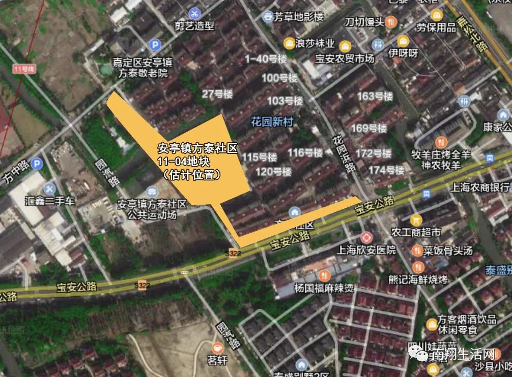 安亭镇方泰社区11-04地块征收安置房项目东至已建花园新村、南至宝安公路、西至晓耕路、北至已建花园新村。建设用地面积12349.7平方米。
