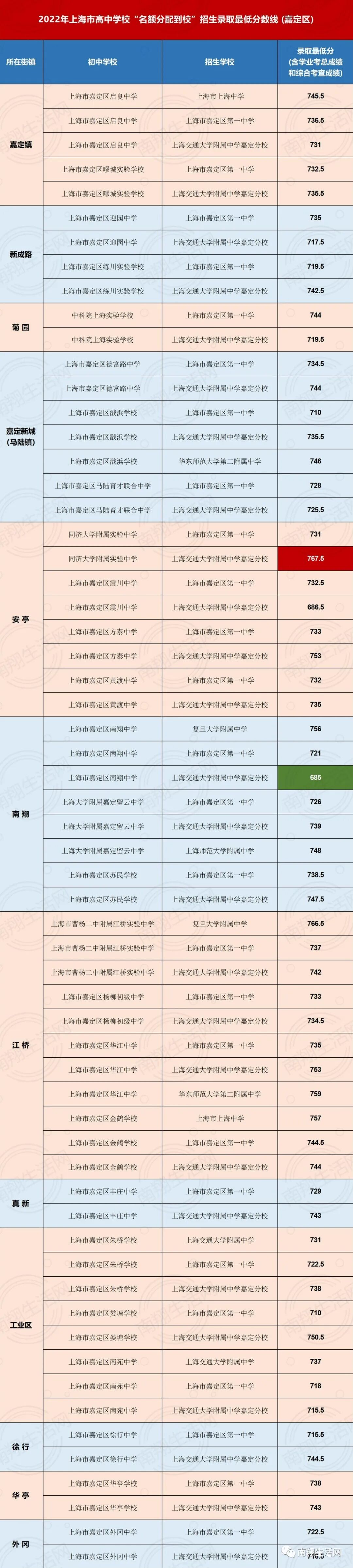 快讯!最低685进交附嘉分!嘉定“名额分配到校”最低分数线来了!(分街镇统计表)