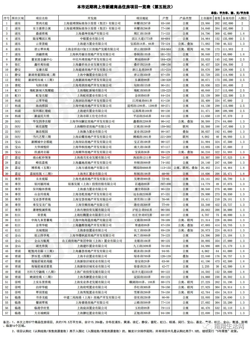 10月15日,南翔生活网从网上房地产(上海市房地产交易中心网站)获悉,上海第五批价格集中过会的57个新盘正式官宣。