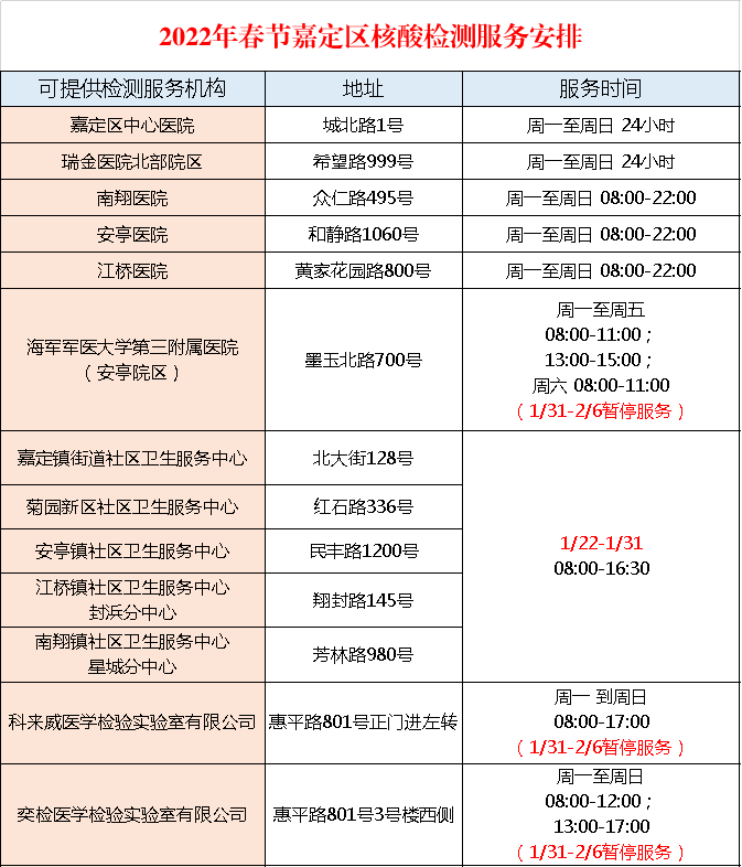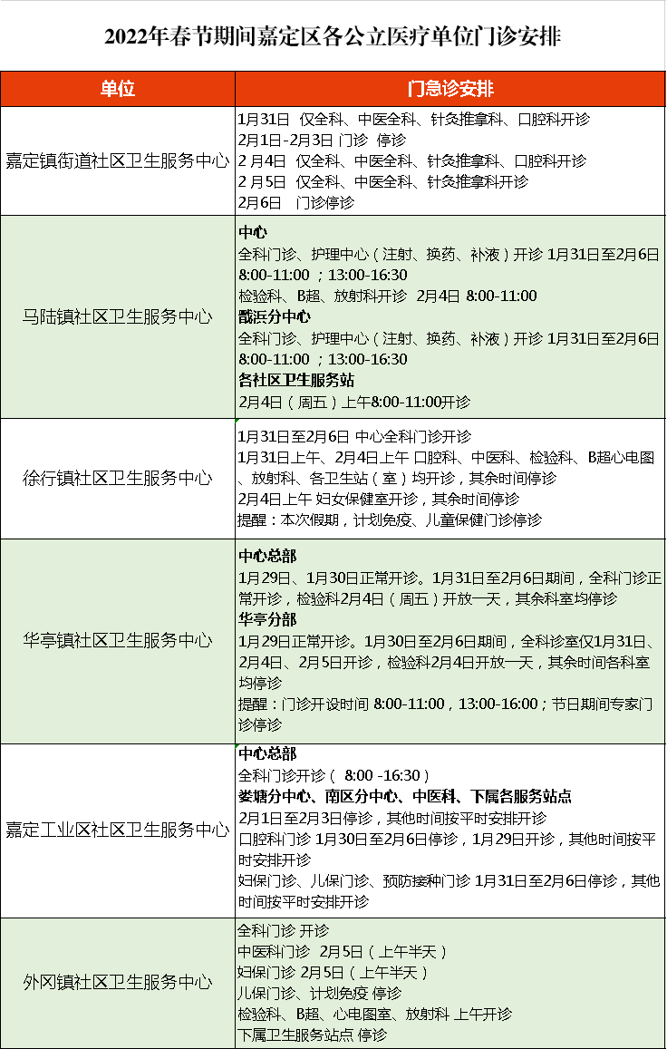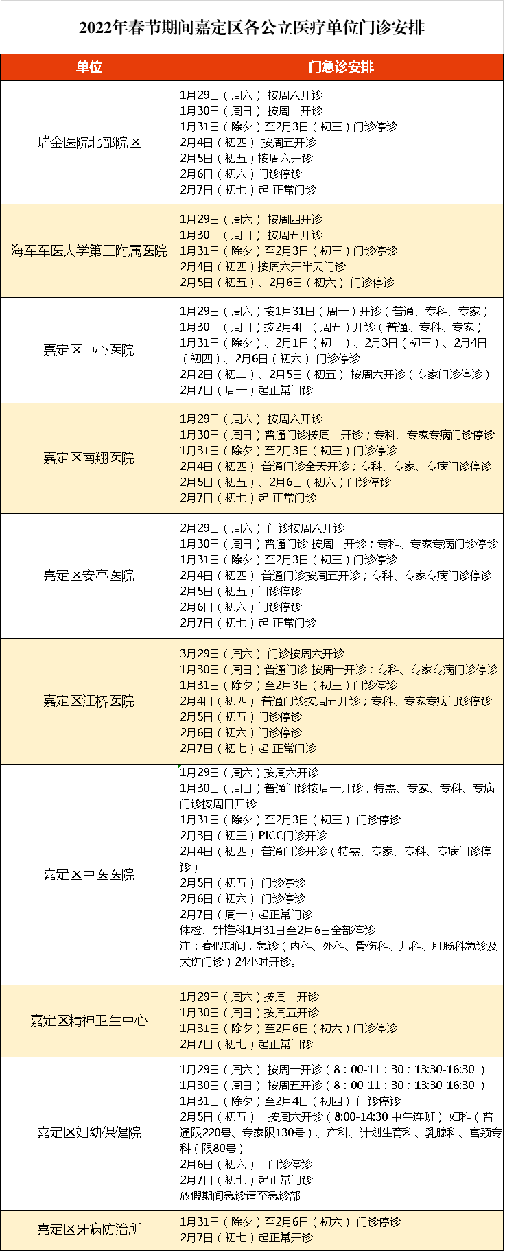扩散!2022春年假期嘉定区各公立医疗单位门急诊、核酸检测定点医院安排来啦!