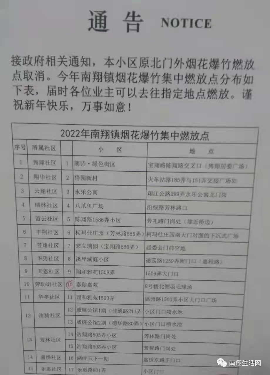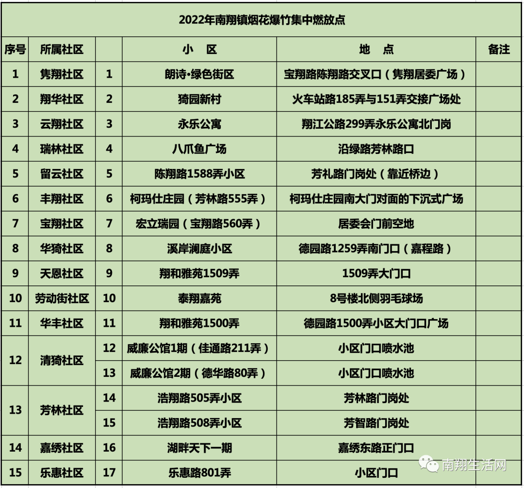 扩散!2022年南翔烟花爆竹集中燃放区域公布!15个点位!