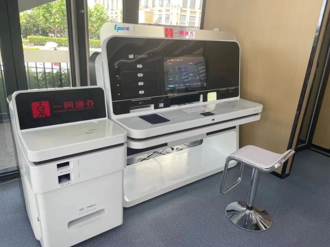 24小时自助服务区内主要包括了访客登记设备、一网通办24小时自助机、智能文件柜和东社区导览设备。