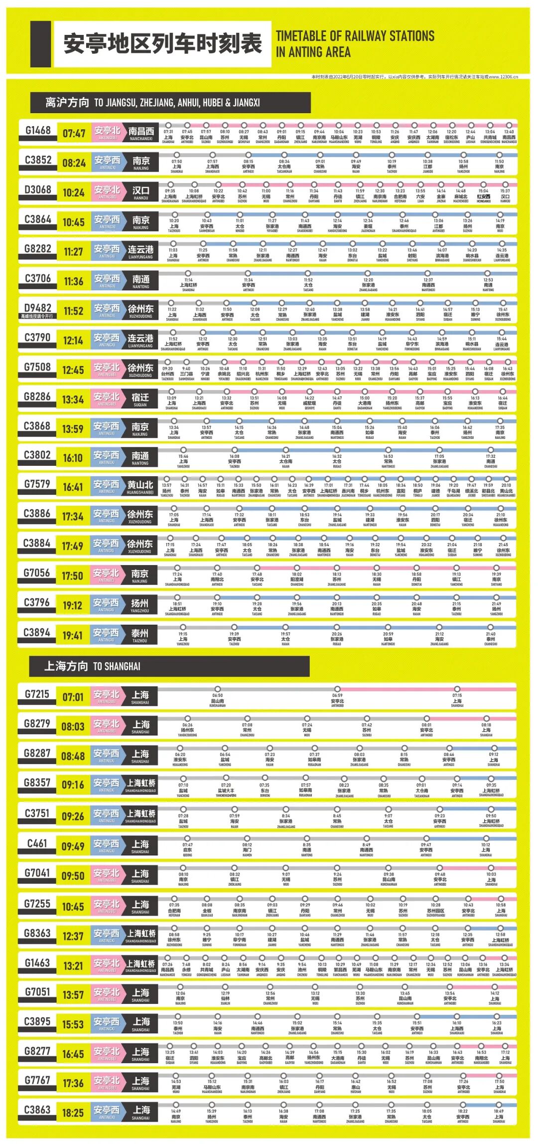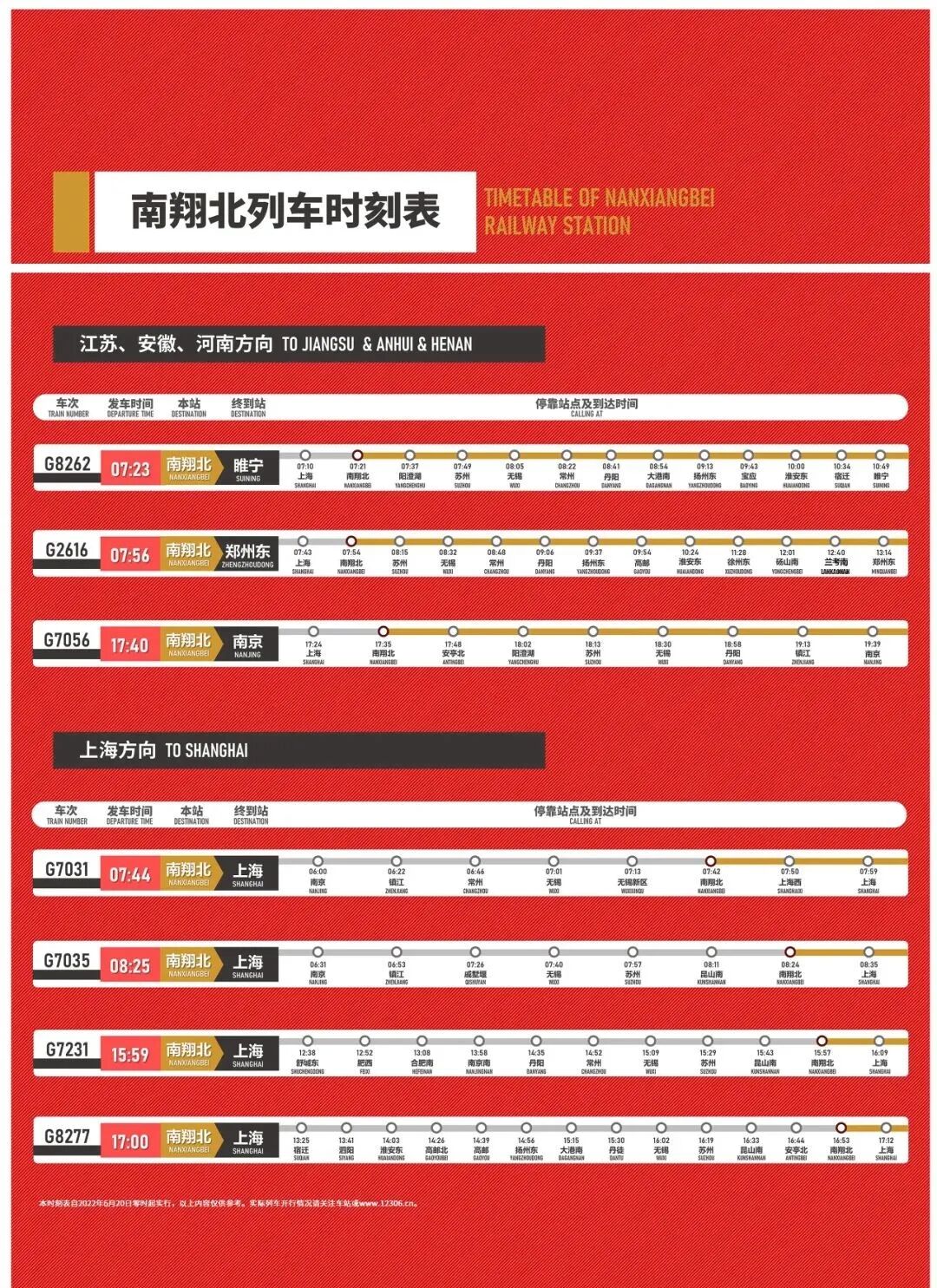 小嘉从有关部门获悉,6月20日零时起,高铁站“安亭枢纽”——安亭西站、安亭北站,南翔北站恢复办理旅客进出站乘车业务。同日起,全国铁路将实行新列车运行图,嘉定地区3个高铁站出行列车也有变化。