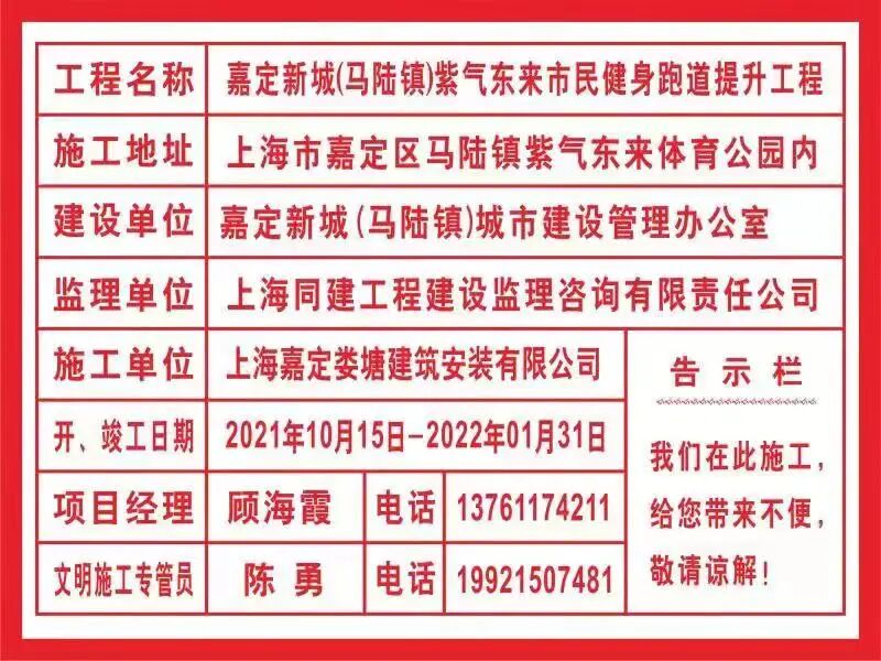 为了给市民提供更好的健身、休闲体验,即日起,嘉定新城(马陆镇)启动紫气东来市民健身步道改造提升工程。
