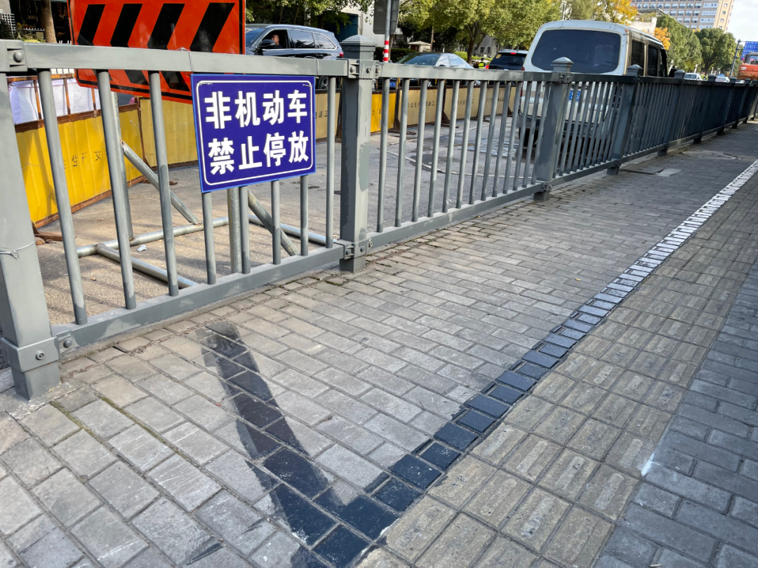 同时,该路段人行道的非机动车停放区暂时取消。地面交通标志也重新划线。