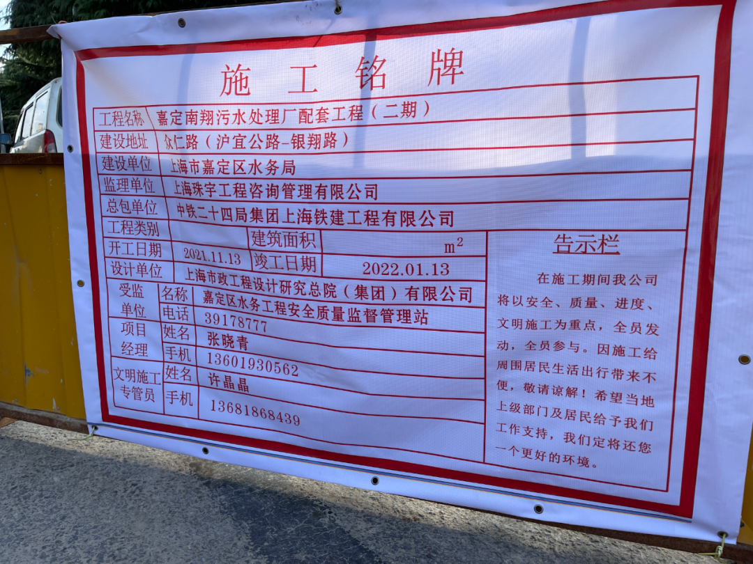据了解,该项目是嘉定南翔污水处理厂配套工程(二期),于11月中旬日开工,预计工期两个月。