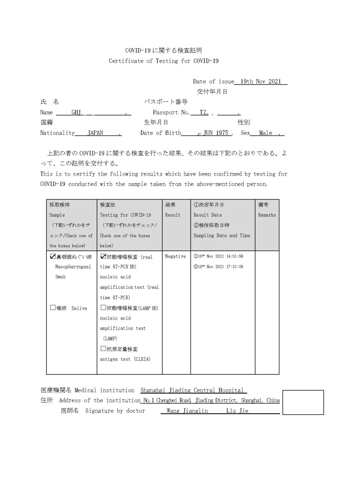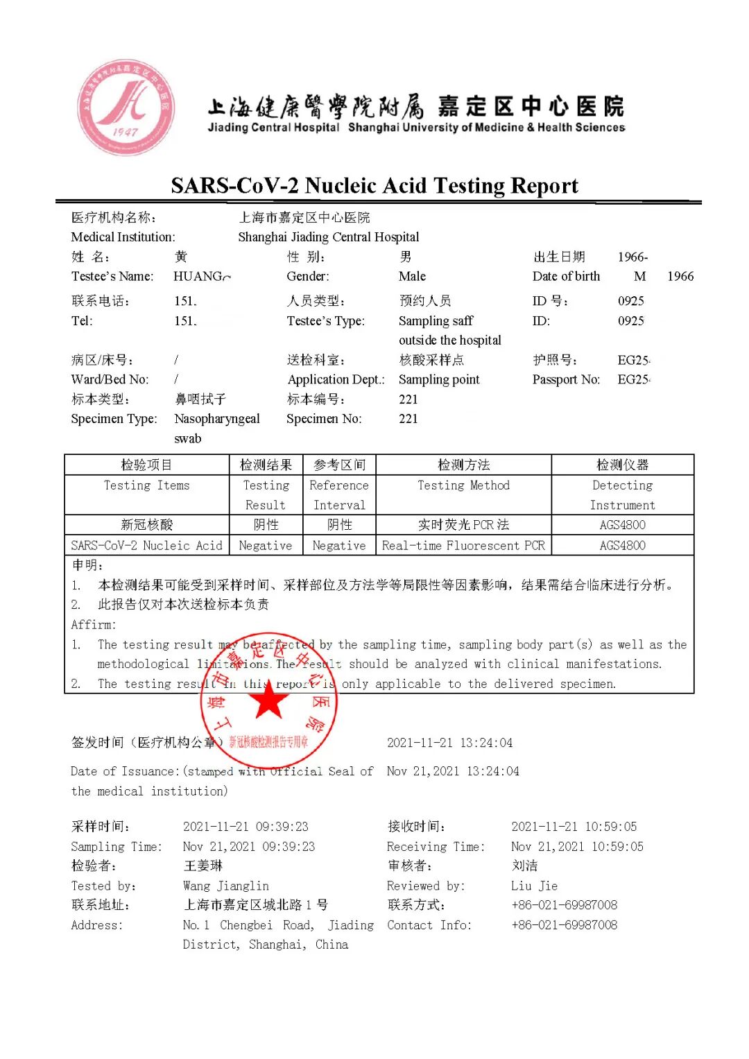 【英文核酸报告样张】