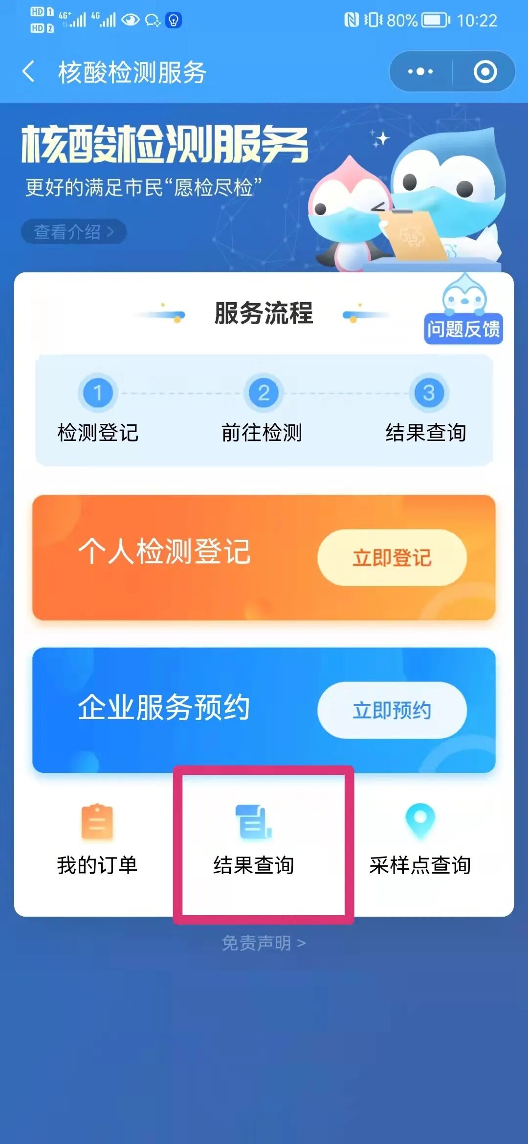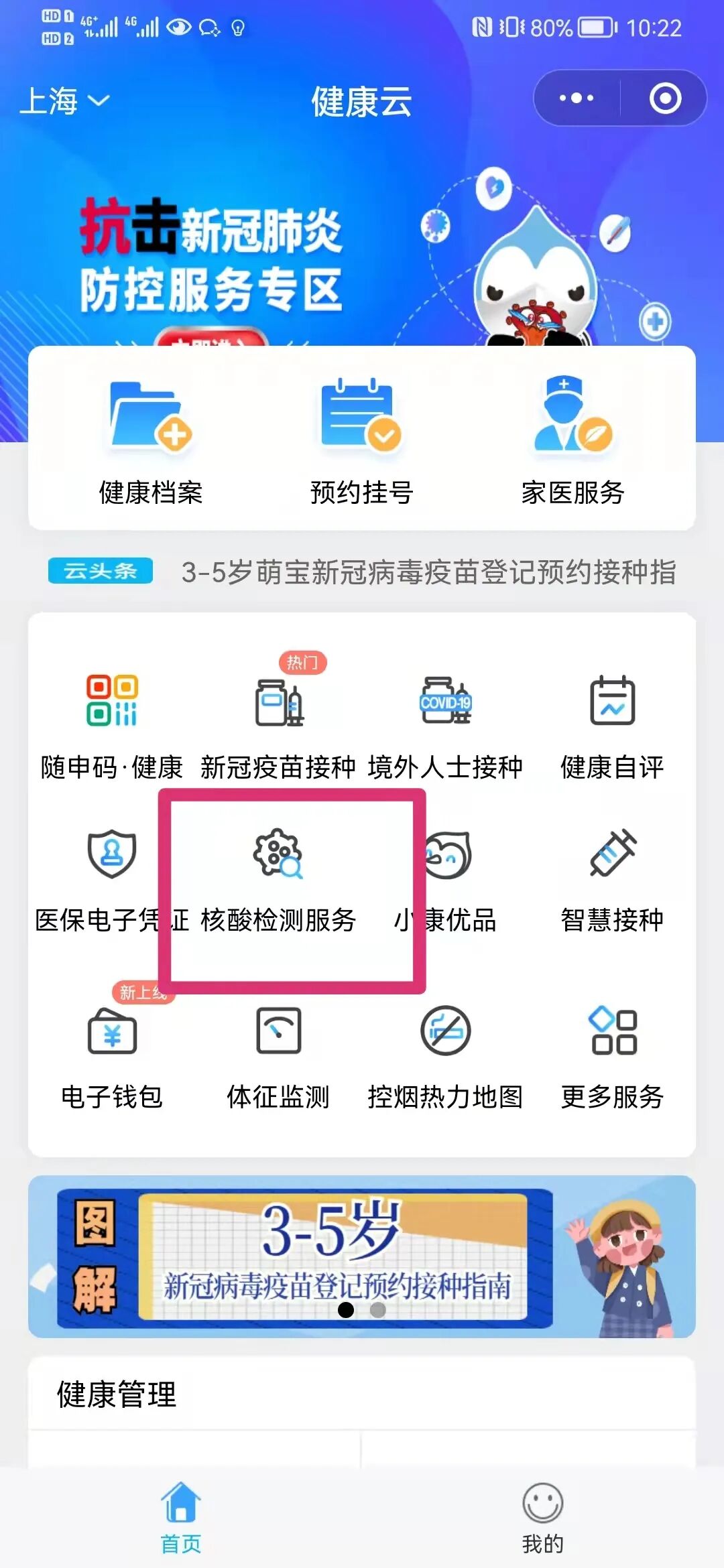 3、点击进入“体检(含核酸)”。