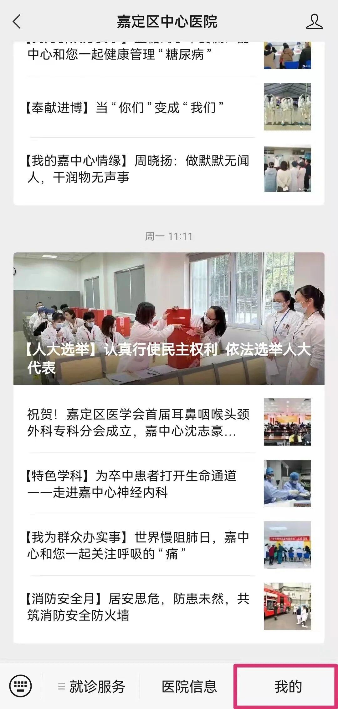 三、关注微信服务号“嘉定区中心医院”,可线上查询核酸检测报告。