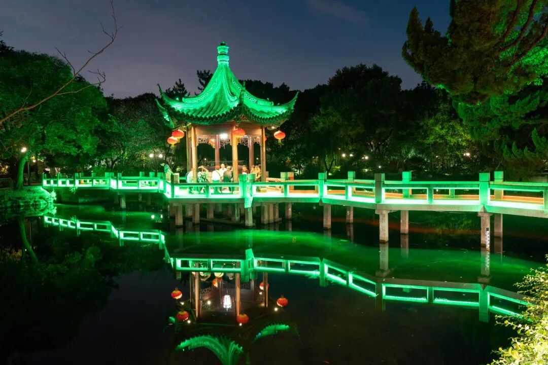 此外,古猗园在中秋国庆双节期间,还重点推出了八大夜景“打卡点”,分别是逸野鸢飞、水木明瑟、缺角铭心、曲桥亭影、天舟不系、绘廊玩月、绿猗风清、山月隐香,诗情画意的园林里,到底哪个“点”最能触动你?只有来了才知道!