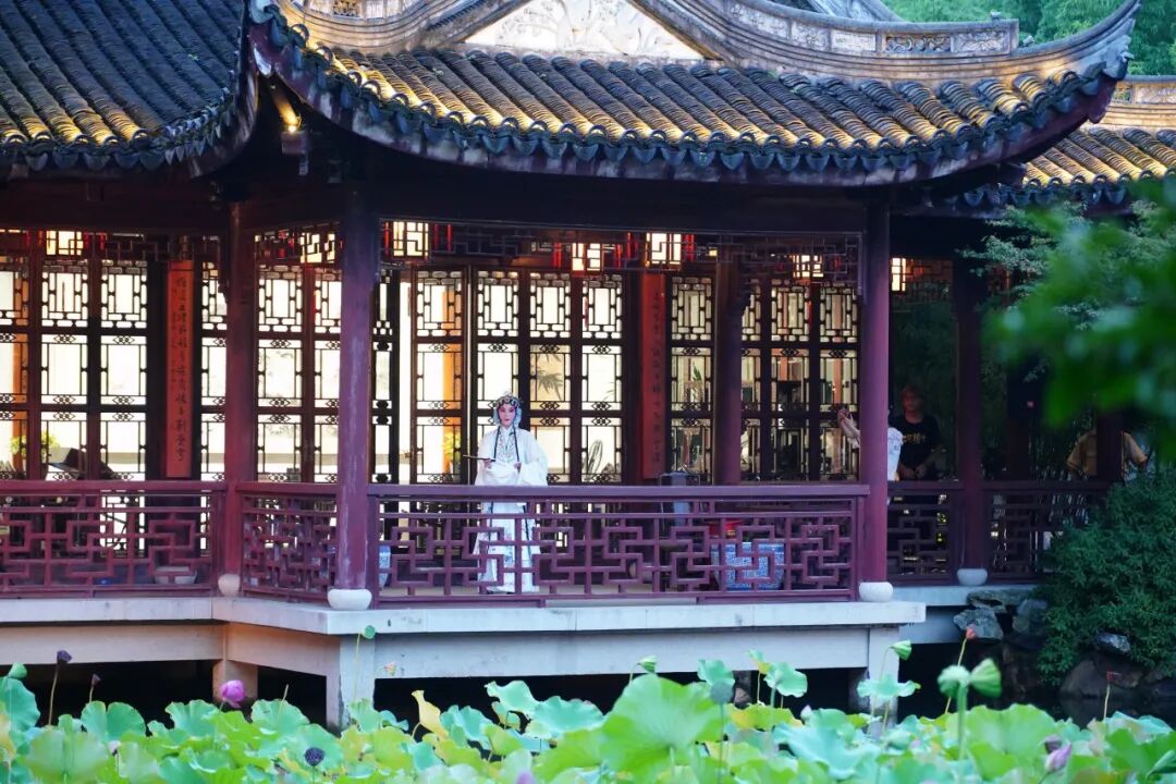 10月5日18:00-18:40,园内不可无竹居南侧平台还会上演京剧专场演出,《智取威虎山》《沙家浜》《红灯记》等经典曲目选段应有尽有。通过水景和光景的传递,在抑扬顿挫的念白中,在委婉透激昂的唱腔里,展现中国传统戏曲的艺术魅力。