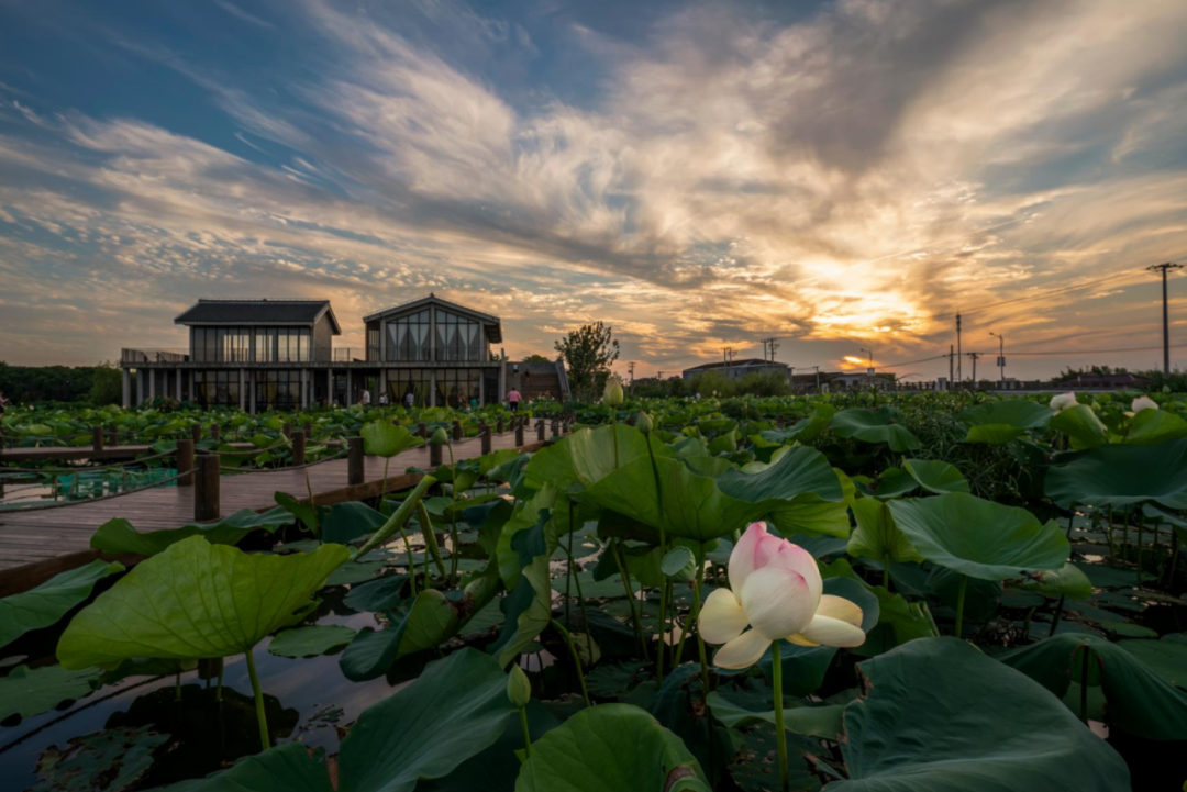 莲湖村坐落于青西郊野公园核心区,是园内唯一有原住民的行政村。莲湖村以“大莲湖”得名,6000亩湖水盛开莲花,盛产莲藕、鲜菱、鱼虾,夏日里白墙黛瓦、绿叶红花,美得像一幅画。4.25平方公里的村庄拥有沿湖60%堤岸风景线,兼具诗意与野趣。