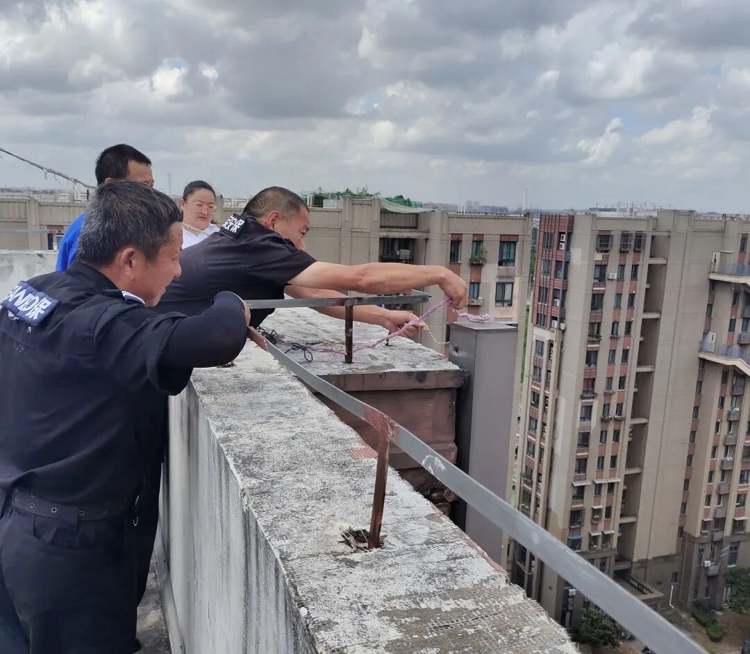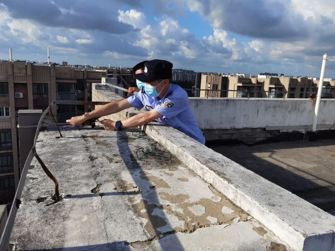 封浜所民警对辖区内高层住宅进行实地排查,着重就顶层天台设施展开排摸加固。