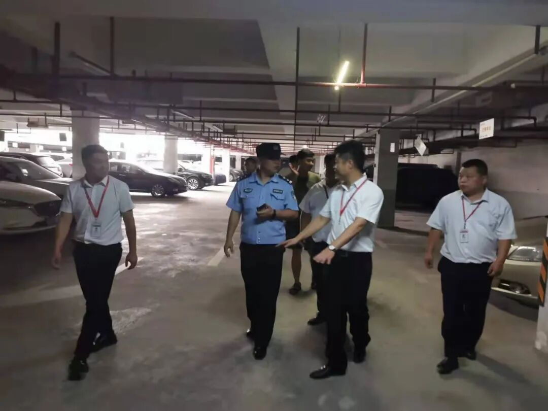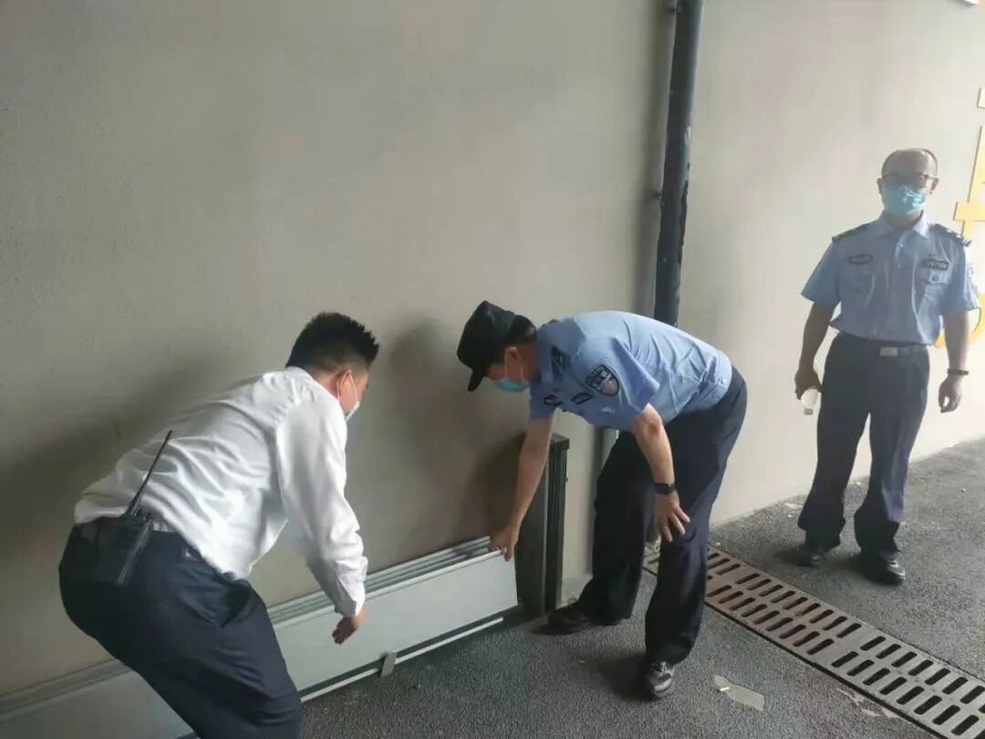 江桥所民警会同物业实地走访查看社区车库防汛工作,逐一排查可能存在的隐患漏洞。