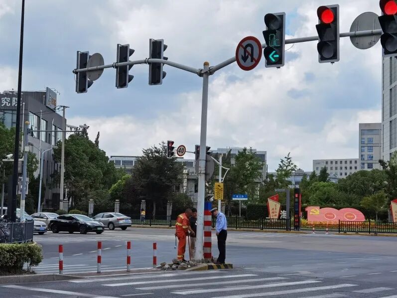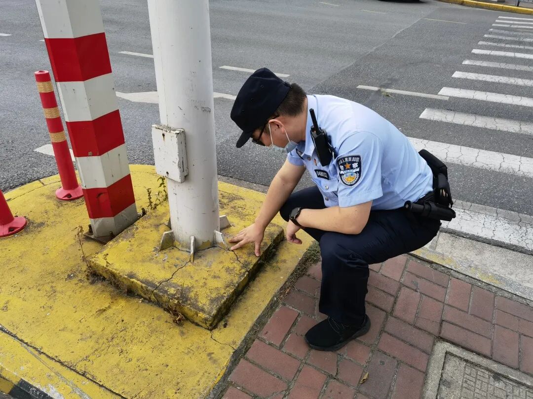 菊园所民警在辖区巡查期间发现平城路、城北路路口交通信号灯底座松动,当即联络相关部门进行抢修。