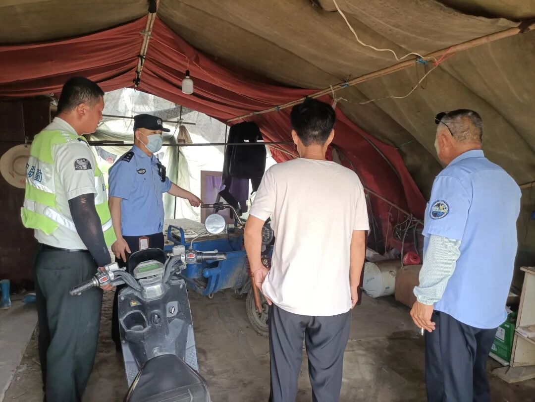 安亭所民警会同村干部对村内蔬菜种植大棚开展安全检查,就发现的隐患问题即时予以整治。