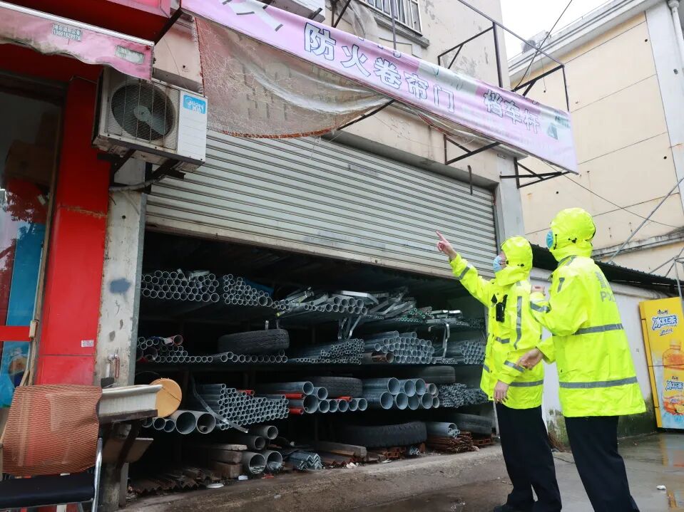 唐行所民警对辖区内蔬菜大棚、沿街商铺开展安全巡查,及时加固松动部位。