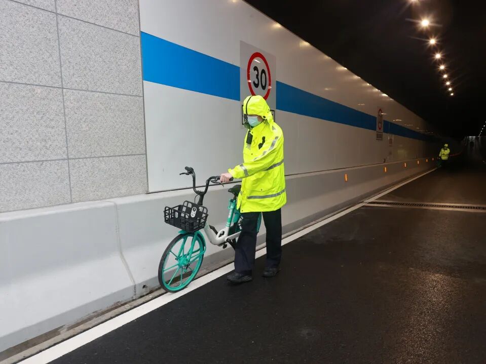 叶城所民警在安全巡查期间,即时清运隧道内乱停放共享单车,消除安全隐患。