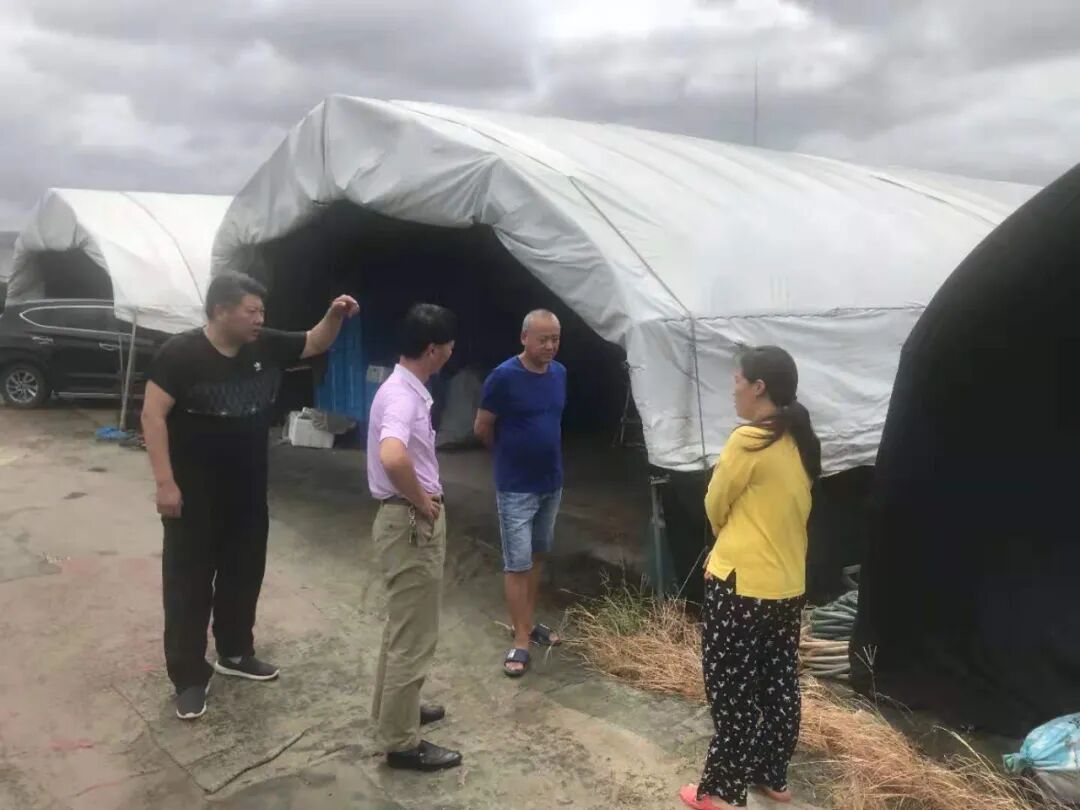 火线村对辖区内企业进行防汛防台安全检查,加固大棚,拆掉移动棚。