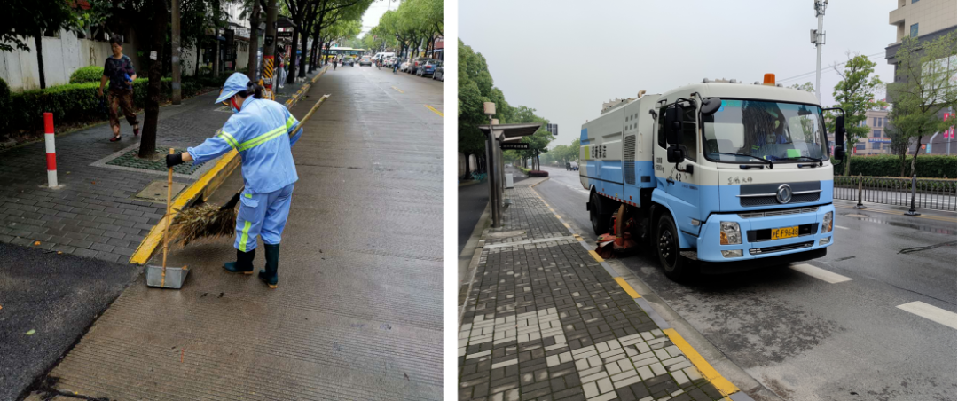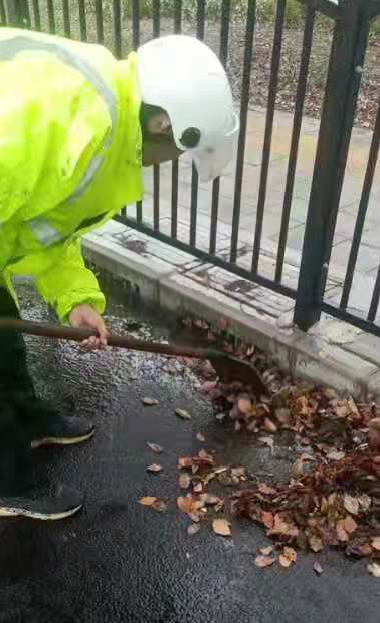 环卫部门针对易积水路段,强化道路保洁力度,清理沿街废物箱,加强道路排水口周边垃圾清除,确保道路排水畅通。