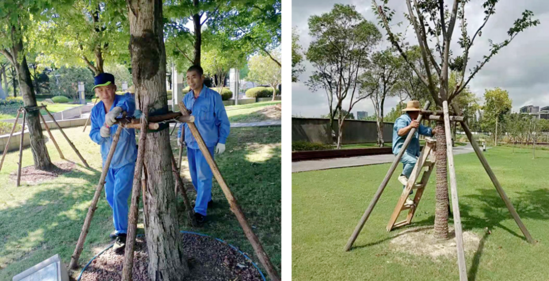 林业部门督促各街镇做好造林项目新种植苗木固定、支撑、修剪工作,以及公益林内沟渠清理、疏通排水工作,确保汛期林地排水通畅,防止内涝,减少林木倒伏。