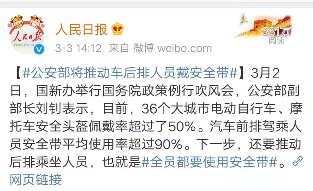 据公安部交管局调查显示:不系安全带已成为道路交通致死的第三大原因,仅次于超速行驶和酒后驾驶。大部分驾驶人和副驾驶乘员已经养成了上车先系安全带的良好习惯,但后排乘坐人往往忽视系安全带的重要性。