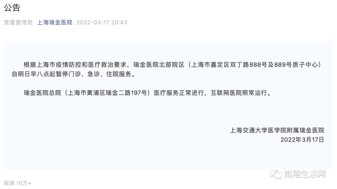 【扩散】嘉定瑞金医院今日起停诊!另附嘉定主要医疗机构开诊情况!