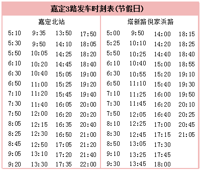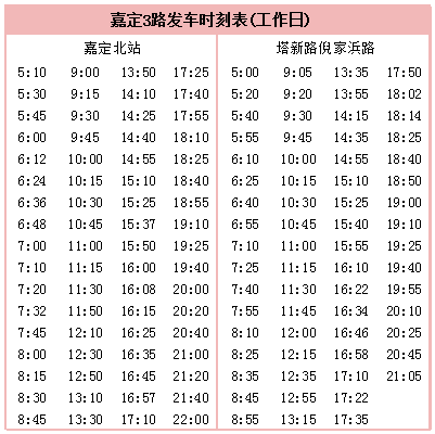 自2021年10月10日起,嘉定3路调整时刻表,调整后时刻表如下。