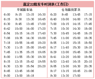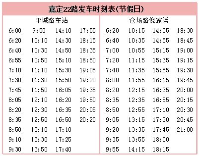 自2021年10月10日起,嘉定22路调整为工作日节假日时刻表,调整后时刻表如下。