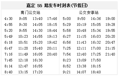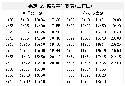 自2022年1月15日起,嘉定55路调整首末班车时间及发车时刻表。具体调整如下: