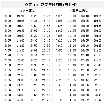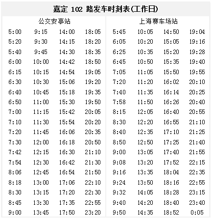 自2022年1月19日起,嘉定102路调整发车时刻表,调整后时刻表如下: