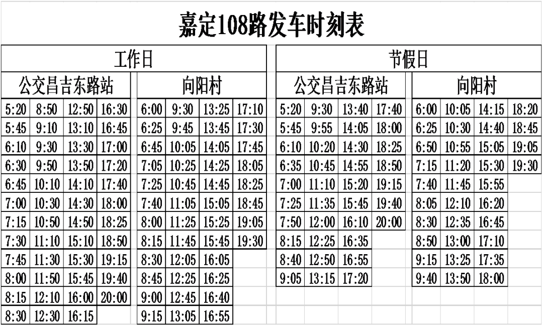 首末班车时间变更:首末班车时间由公交昌吉东路站6:00-20:00 向阳村6:00-19:30,变更为公交昌吉东路站5:20-20:00 向阳村6:00-19:30。