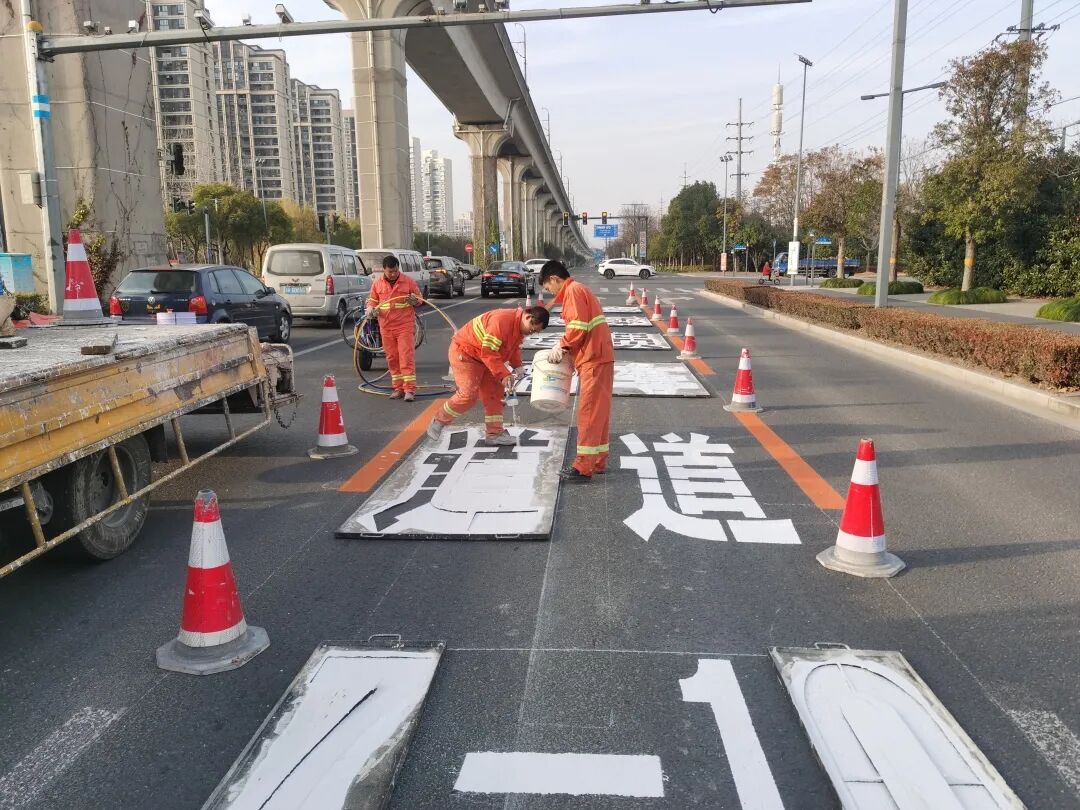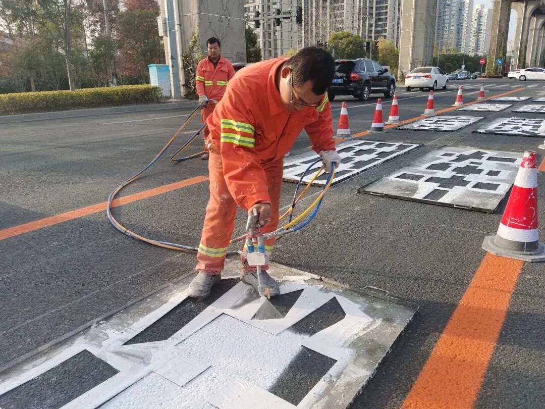 施工方现场负责人钟耀富介绍,此次地面标识的划设采用了新型环保材料,将更加耐用,“原来用的是热熔涂料,现在用的是双组分的喷涂材料,晚上反光效果比较好。”