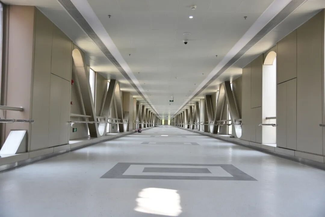 连接瑞金医院北院门诊住院楼和瑞金医院肿瘤(质子)中心门诊、住院部的连廊5月底即将启用,将为患者检查转运和院区内医生会诊查房等提供便利。
