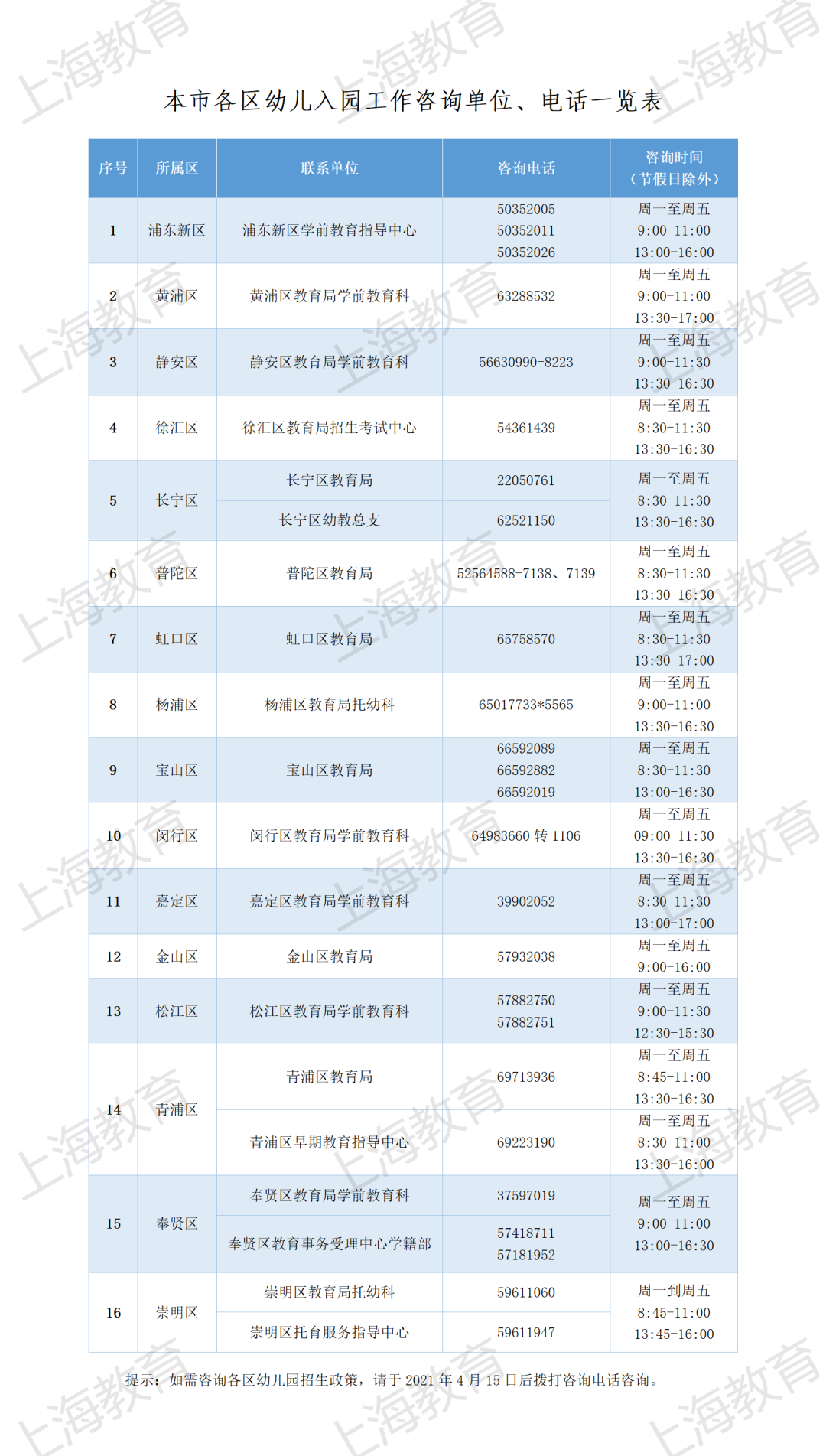 4月15日,各区公布幼儿园招生政策。