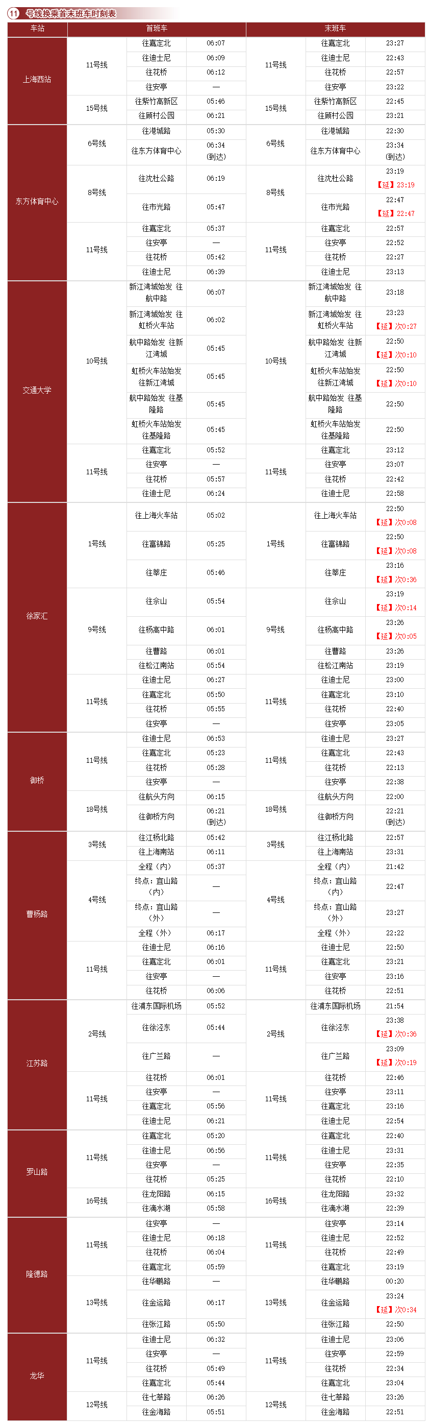 【扩散】收藏!11号线最新时刻表出炉!