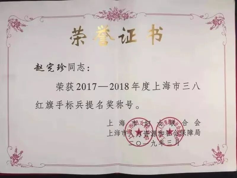 她,就是赵宪珍。是上海市老三八红旗手标兵提名。