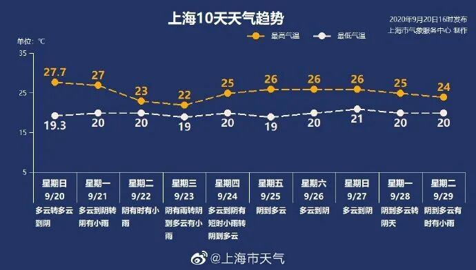 - 2020年的第265天 - 嘉定明日天气:阴转小雨 24℃/18℃ 尽管申城气温比上周略有回升 今早出门还是感受到了凉意  明天秋分   气温下跌,雨水返…