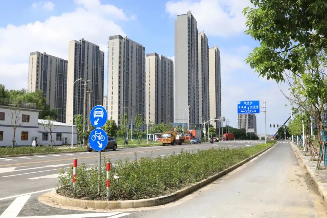新建成通车的武威路(众仁路-镇界)道路全长115.74米,宽35米,车行道采用沥青混凝土浇筑,道路上的人行道也使用同质砖铺设。道路等级为城市次干路,设计行车速度40千米/时。