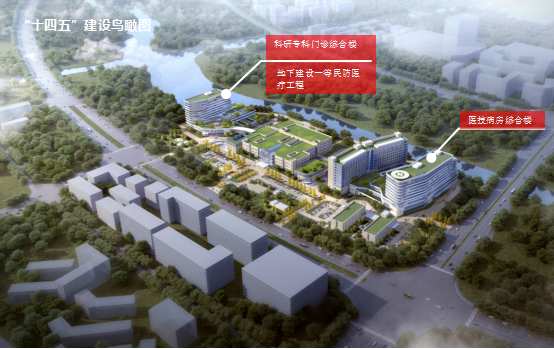 主要建设内容为新建医疗综合楼、科教综合楼、地下一等医疗救护工程、直升机停机坪及相关配套设施,新建总建筑面积约12.5万平方米。