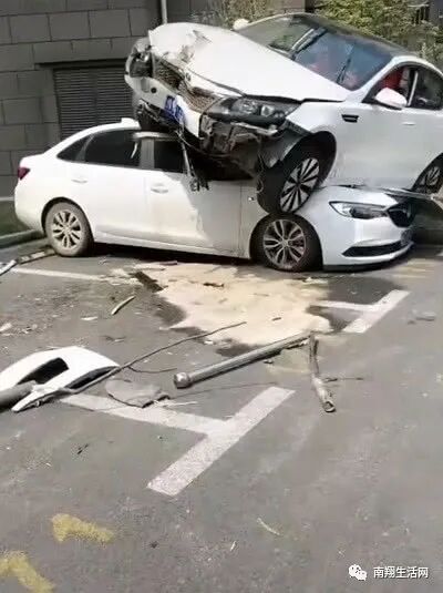 离奇!嘉定一小区内一辆车“骑”上了另外一辆车….