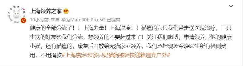 博主和小动物爱好者们多次发帖感慨上海速度、上海温度,同时感谢@嘉定警方。