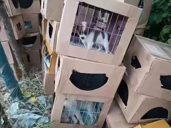 昨天下午,上海嘉定区乐惠路某小区门口发现大量活体宠物盲盒,上百只奶猫奶狗被装在纸箱覆盖的笼子里,瑟瑟发抖、哀嚎不止。
