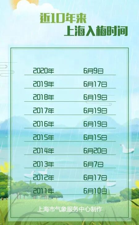 上海常年平均入梅时间为:6月17日。